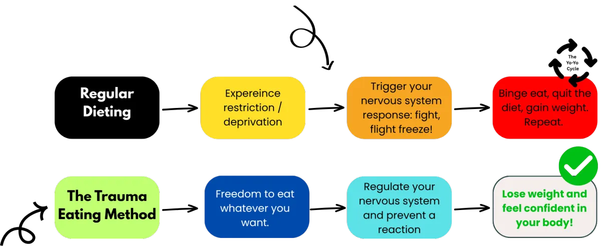 Every other approach focuses on food and willpower. This is the first method that addresses the emotional and neurological reasons you overeat. It's trauma-informed, not restriction-based.